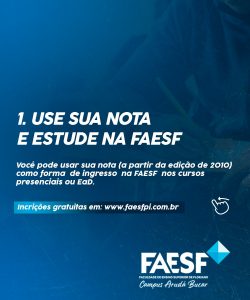 ? Com o resultado da prova em mãos, é possível participar de programas como o ProUni e Fies e também usar como forma de ingresso na FAESF nos cursos de graduação presencial e EaD!