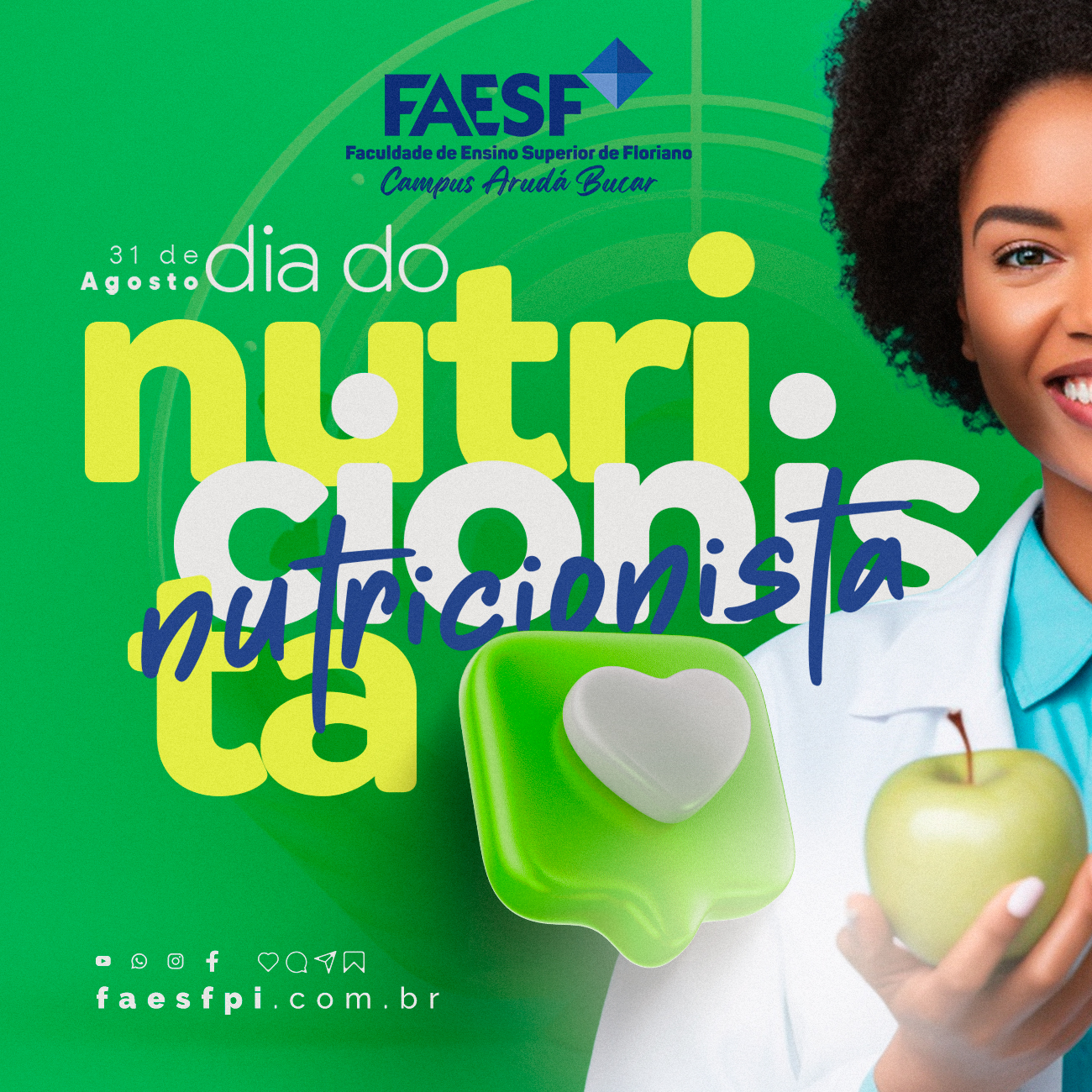 Nesse Dia do Nutricionista, 31/08, o curso de nutrição da Faculdade de Ensino Superior de Floriano – FAESF, promoveu uma programação especial para os acadêmicos, com palestras e a...