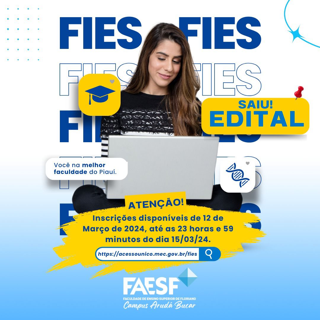 O edital FIES 2024 já está disponível, confira as informações! Confira o edital por meio do site: https://www.in.gov.br/en/web/dou/-/portaria-n-167-de-1-de-marco-de-2024-546261724 ? Anote na sua agenda: as inscrições de 12 de março...