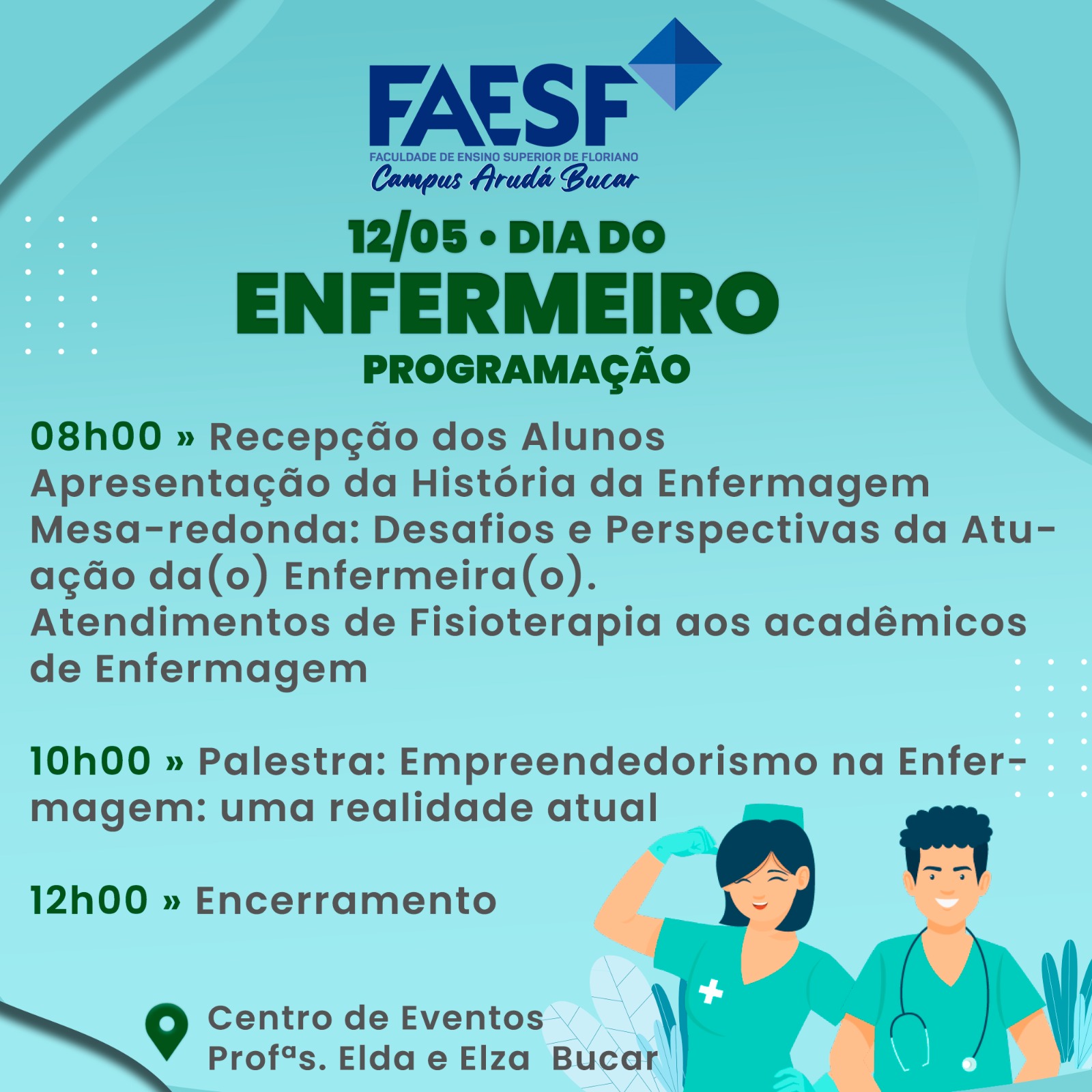 Nessa sexta-feira, dia 12/05, é comemorado o dia Internacional da Enfermagem e o Dia do Enfermeiro. O curso de Enfermagem da FAESF organizou uma programação especial para celebrar o...
