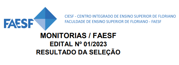 A FACULDADE DE FLORIANO – FAESF torna público, pelo andamento do presente do Edital, o resultado do processo seletivo para MONITORIAS, destinadas ao atendimento de Disciplinas nos Cursos de...