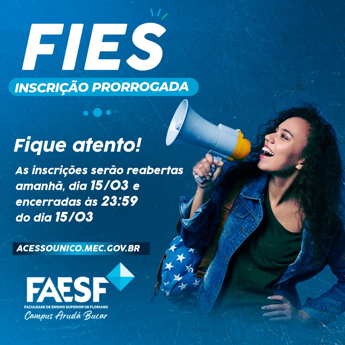 Se liga que é só até amanhã! ?♂️?♀️ Se você deseja ingressar na FAESF com o Fies no semestre 2022.1 ainda dá tempo! Acesse o site do FIES (portalfies.mec.gov.br/)...
