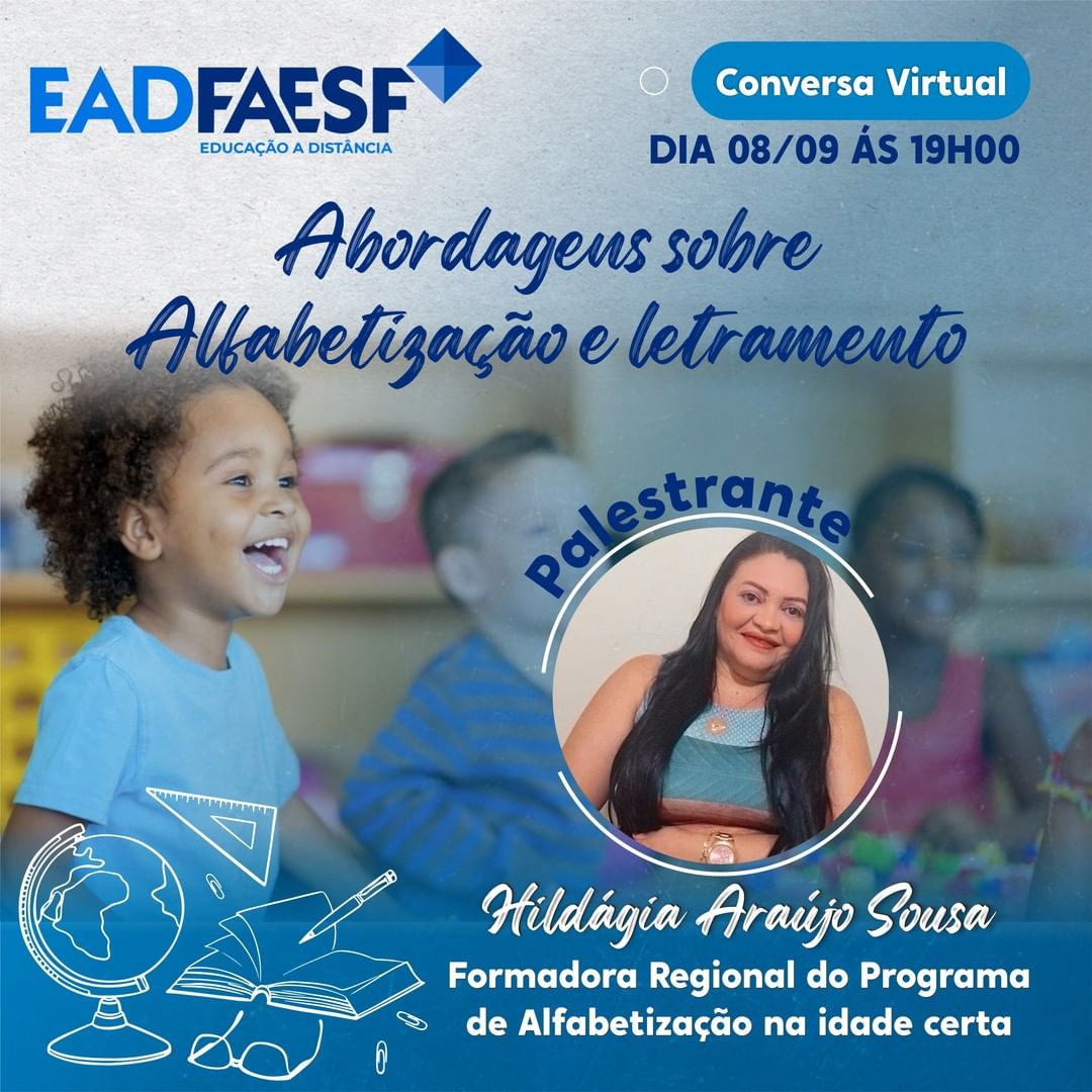 O curso de pedagogia EAD da FAESF, promove uma roda de conversa sobre “Alfabetização e letramento “, aos acadêmicos do curso de Pedagogia e profissionais da educação. A palestrante...