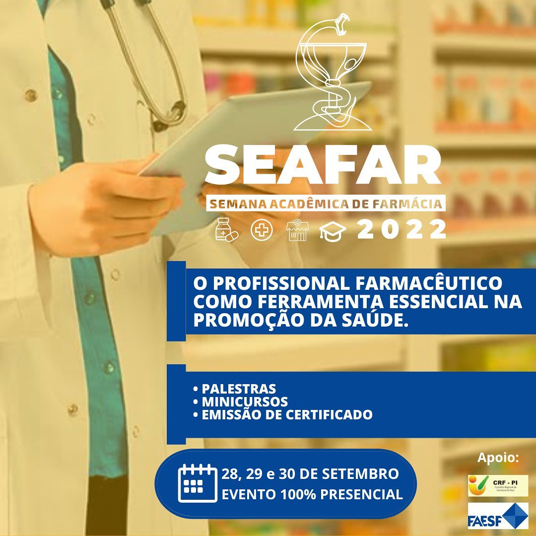 Vem aí a Semana Acadêmica de Farmácia da FAESF (SEAFAR) ? O SEAFAR é um evento organizado por alunos do curso de Farmácia da FAESF, com o objetivo de...
