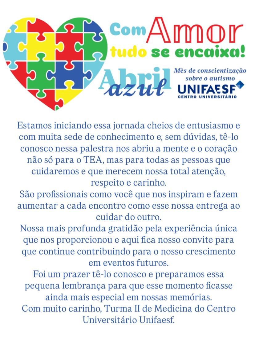 O Centro Universitário FAESF – UNIFAESF convida toda a comunidade acadêmica e sociedade em geral para participar da mesa-redonda “Conscientização sobre o Autismo – Com amor, tudo se encaixa!”,...