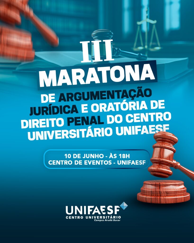 O Curso de Direito do Centro Universitário FAESF – UNIFAESF convida todos os acadêmicos e entusiastas do Direito a participarem da III Maratona de Argumentação Jurídica e Oratória de Direito Penal.