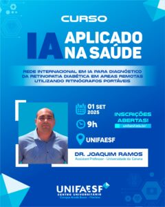 📢 INSCRIÇÕES ABERTAS Curso: IA Aplicado na Saúde – UNIFAESF 📅 Data: 01 de setembro (segunda-feira) ⏰ Horário: 9h 📍 Local: Sala de Aula –